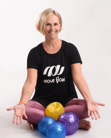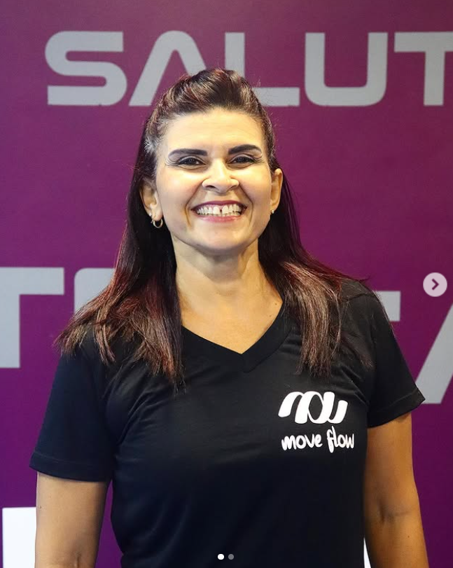 Descobri o Move Flow em plena pandemia e me encantei com sua potência transformadora. Em 2020, fiz a formação e me tornei a primeira embaixadora do método em Salvador. A prática combina respiração, música, consciência corporal e estímulo da fáscia — um tecido que envolve todo o nosso corpo. O resultado é um trabalho profundo que alivia dores físicas, reduz o estresse e acalma a mente. A cada aula, é como tirar um peso das costas — literalmente e emocionalmente.